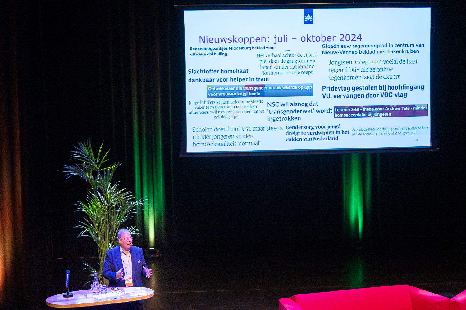 In het plenaire deel spraken dr. Anne Louise Schotel, europarlementariër Kim van Sparrentak en Nationaal Coördinator tegen Discriminatie en Racisme Rabin Baldewsingh vanuit hun expertise over respectievelijk de weerstand tegen de toegenomen zichtbaarheid van LHBTIQ+ politici, over de haat en intoleratie in online berichten en over de zorgen die we ons moeten maken over de discriminatie van minderheden in een periode van politieke verharding in Den Haag.