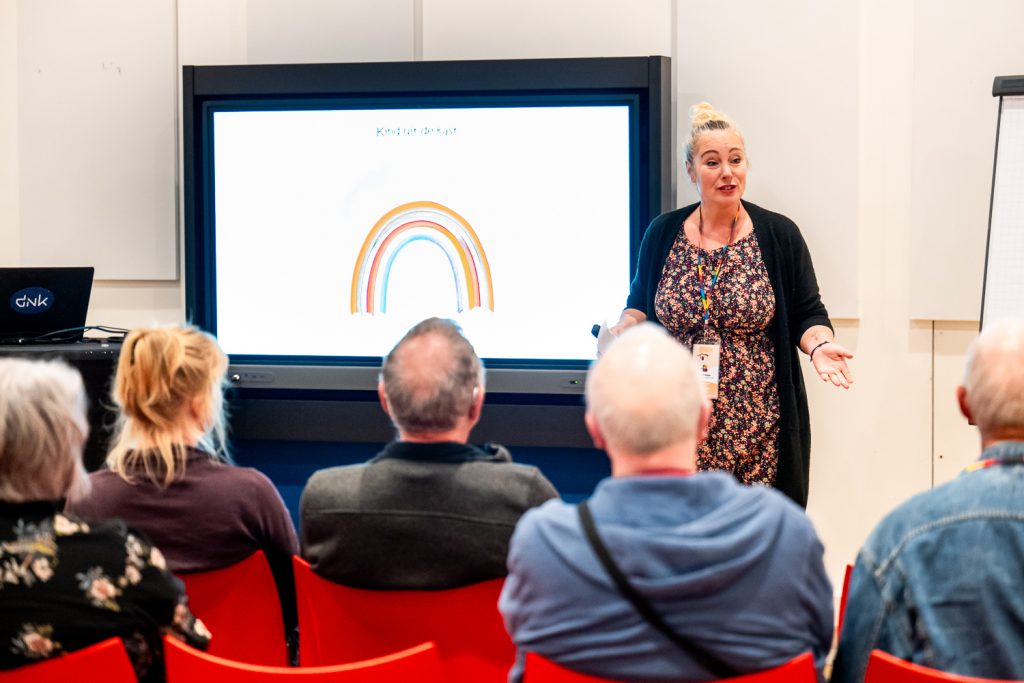 Vanuit haar zorginhoudelijke invalshoek liet Den Hartog Jager zien hoe professionele begeleiding ouders kan helpen hun kind te blijven ondersteunen, ook als het moeilijk wordt. Met praktische tools, visuele hulpmiddelen en verwijzingen naar betrouwbare platforms bood zij concrete handvatten om samen door de coming-out te gaan.